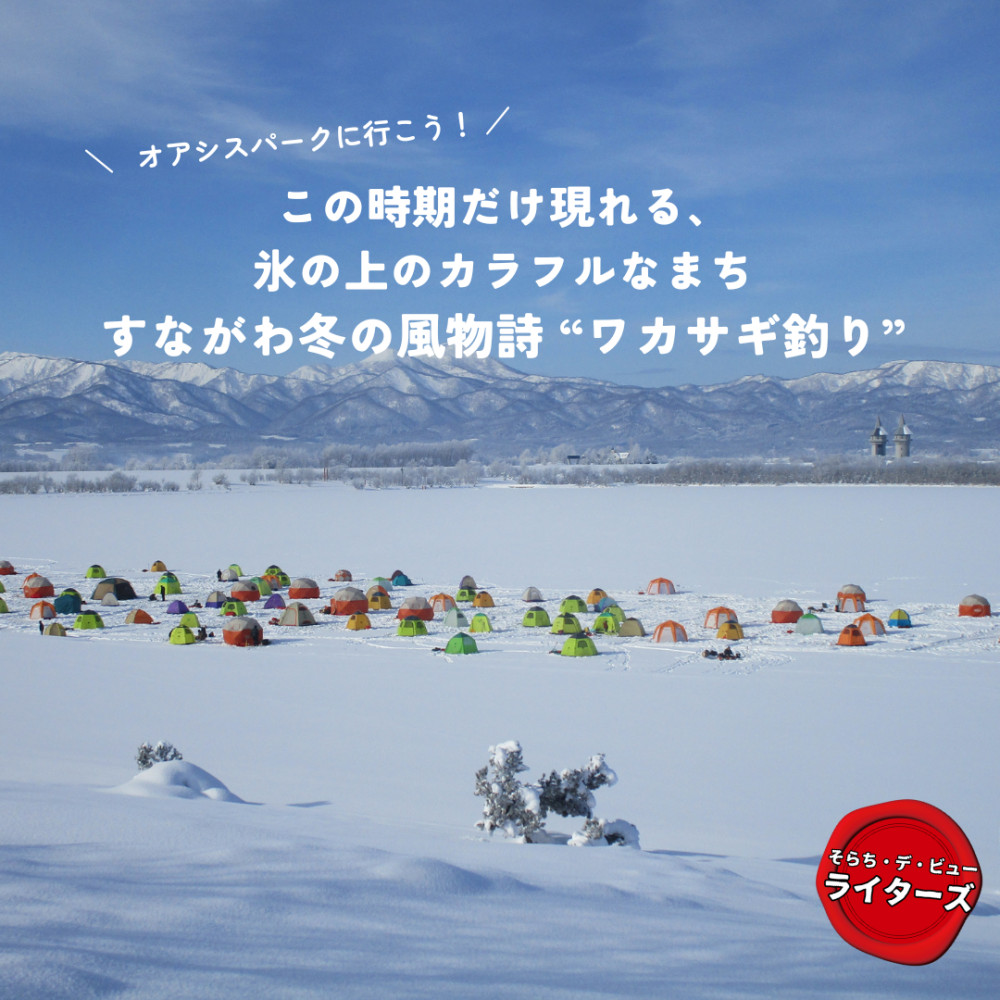 この時期だけ現れる、氷の上のカラフルなまち すながわ冬の風物詩“ワカサギ釣り”