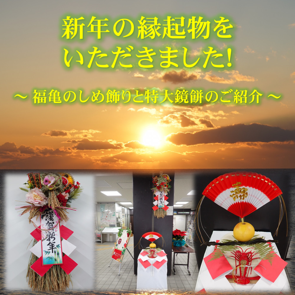 新年の縁起物をいただきました! ~福亀のしめ飾りと特大鏡餅のご紹介~